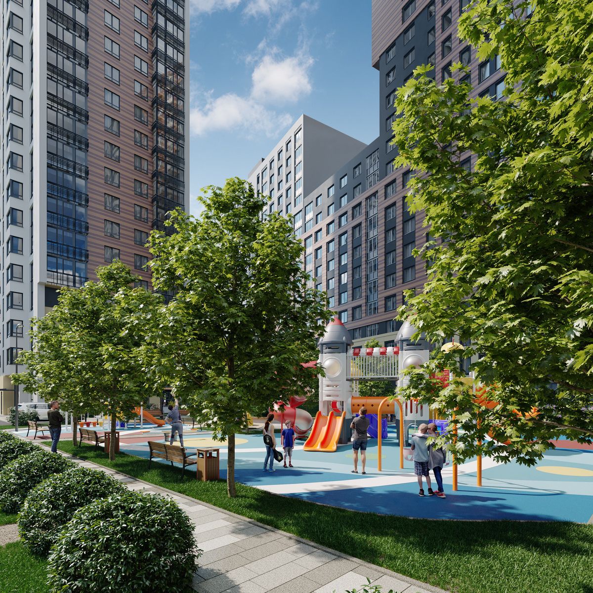 - Детские площадки, пешеходные дорожки, спортивная площадка и воркаут-зона