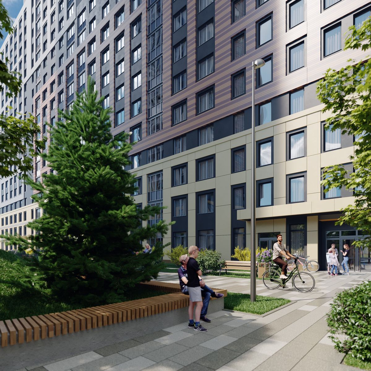 В комплексе сквозные подъезды: в каждый вы можете попасть с улицы или внутренней территории. В просторных вестибюлях — зеркала и мягкая мебель.